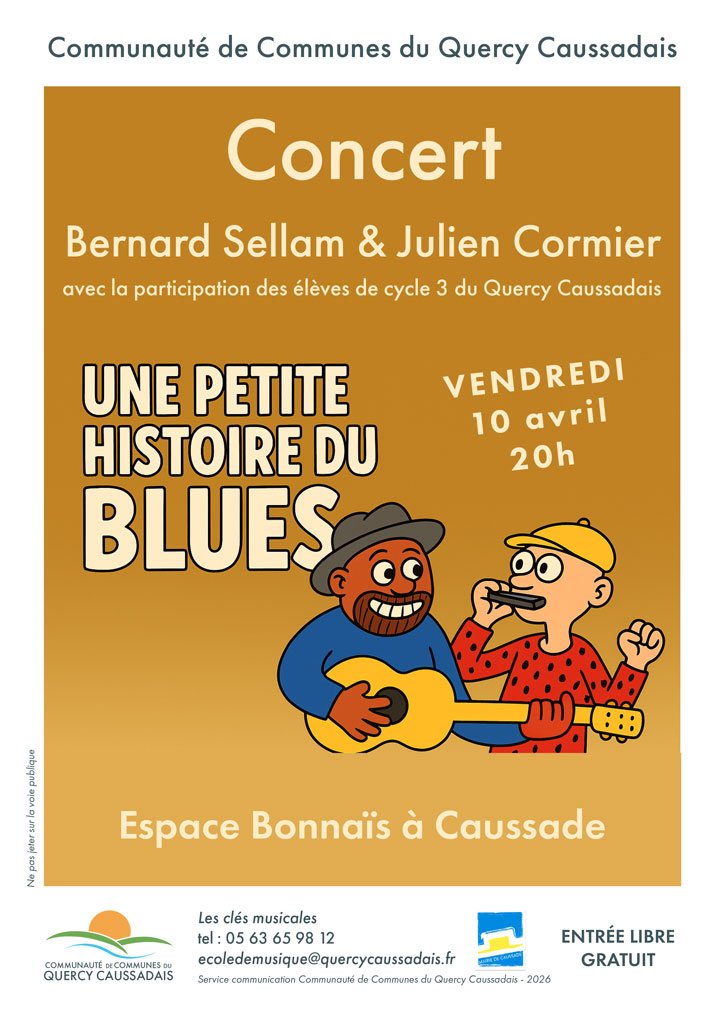 Le duo Bernard Sellam et Julien Cormier sera en résidence les 7-9 et 10 avril en Quercy Caussadais pour échanger avec les cycles 3. Ils leur présenteront leur spécialité musicale, la musique de Blues.
